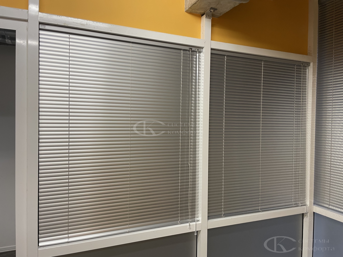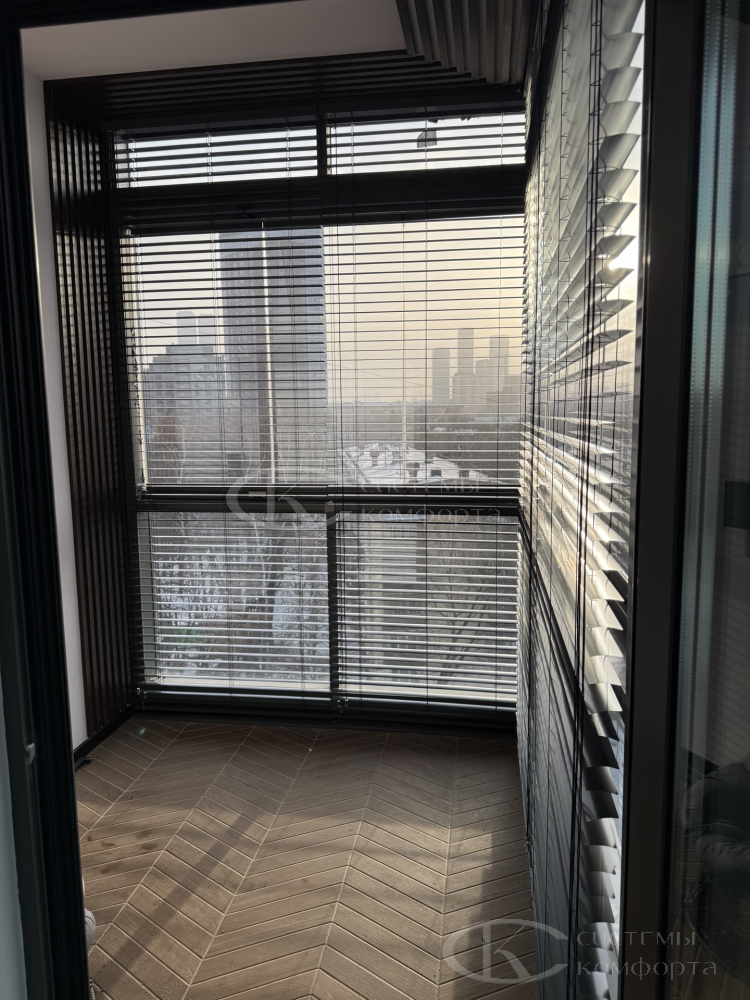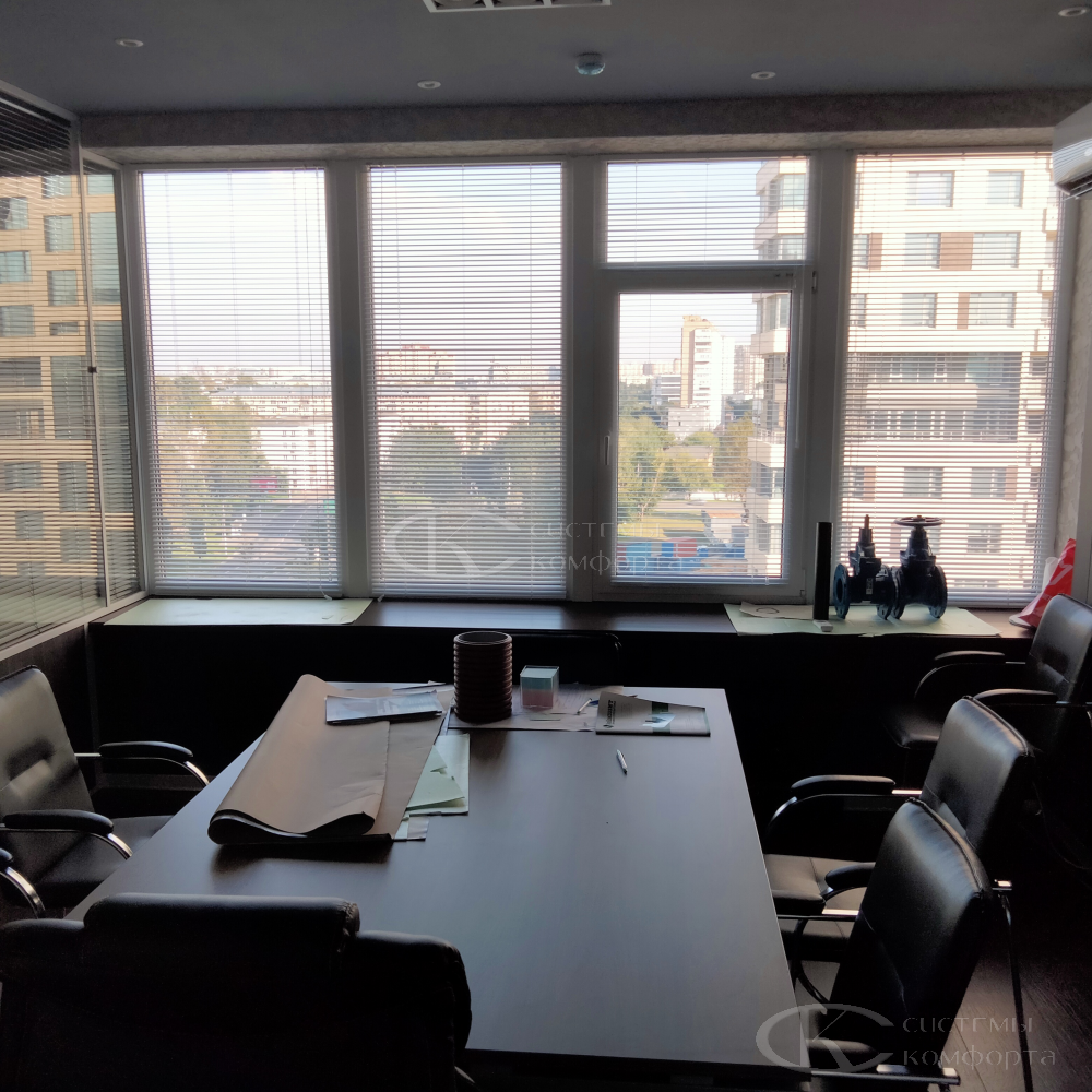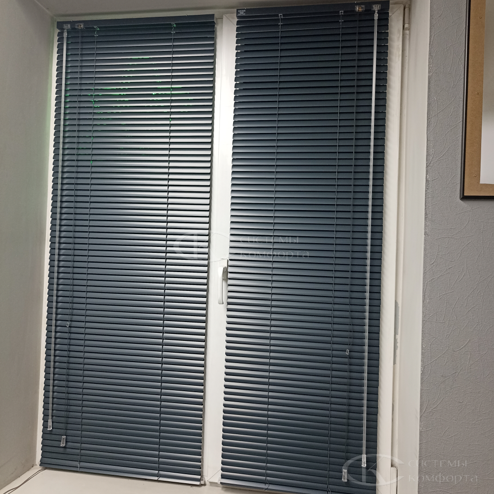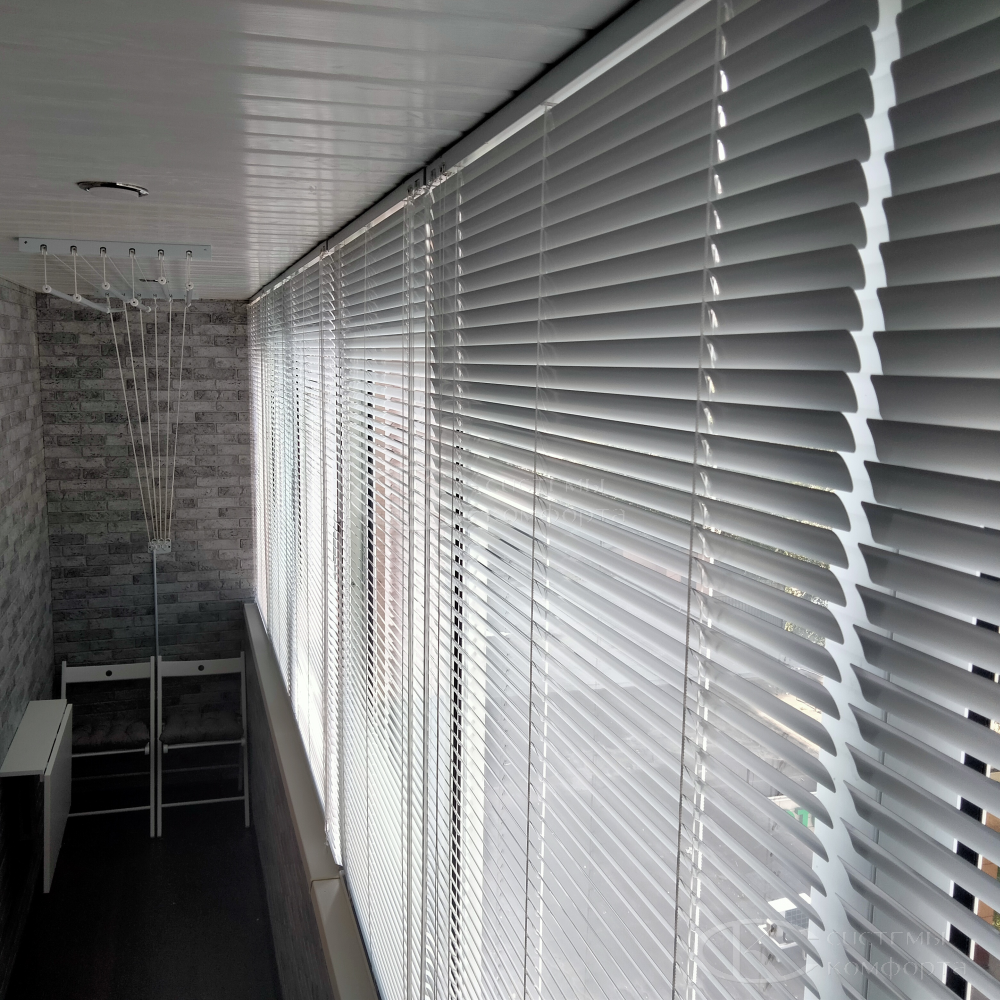 Компания «Системы комфорта» предлагает горизонтальные жалюзи с цветными алюминиевыми ламелями и перфорацией (опционально). Краска, которая используется в производстве, сертифицирована (экология), не выгорает на солнце и не истирается весь срок службы изделия.