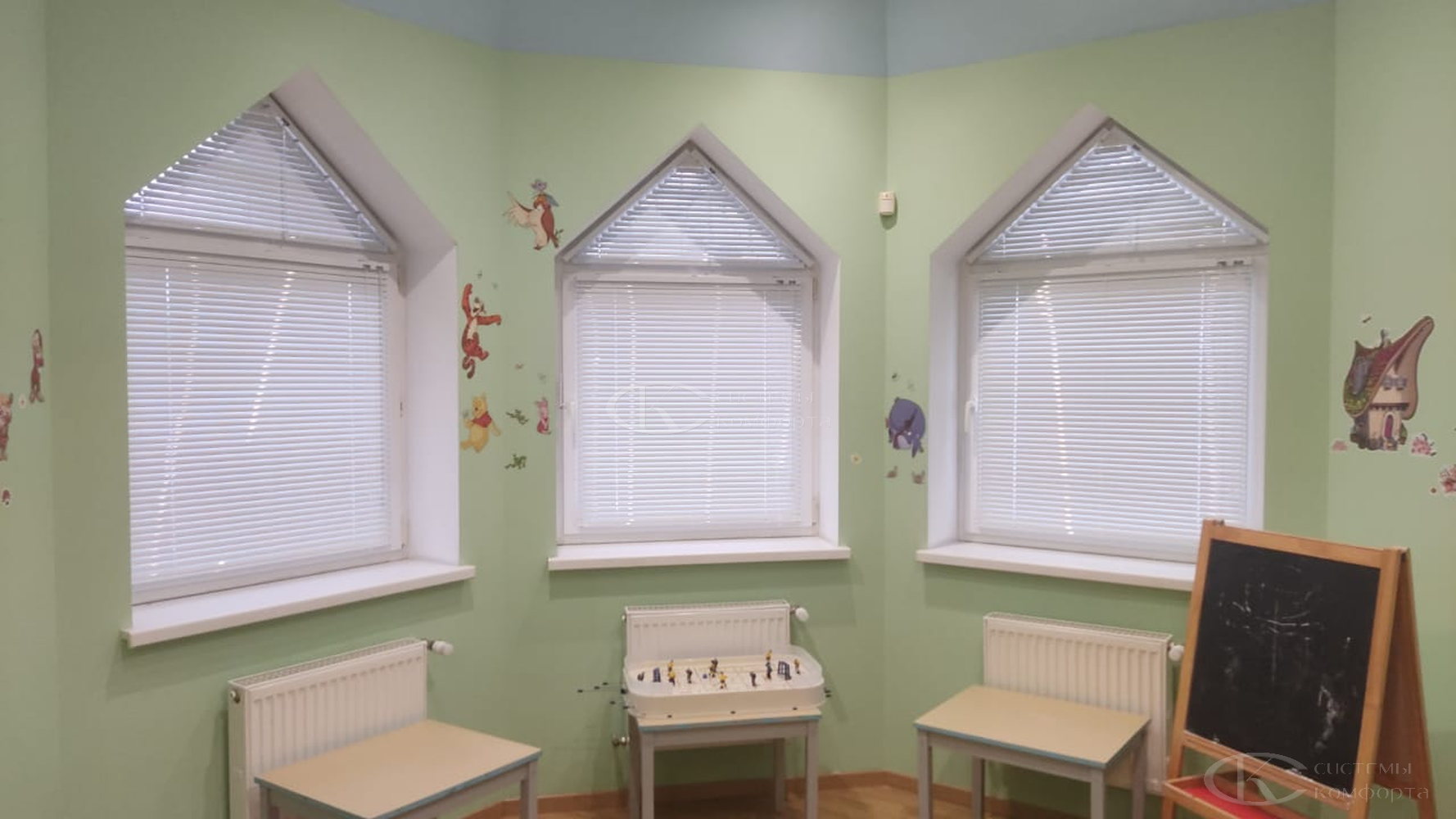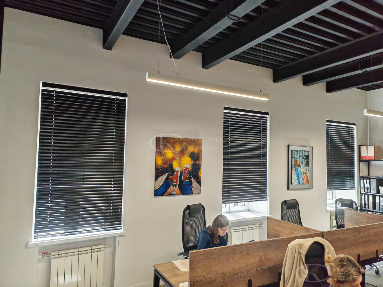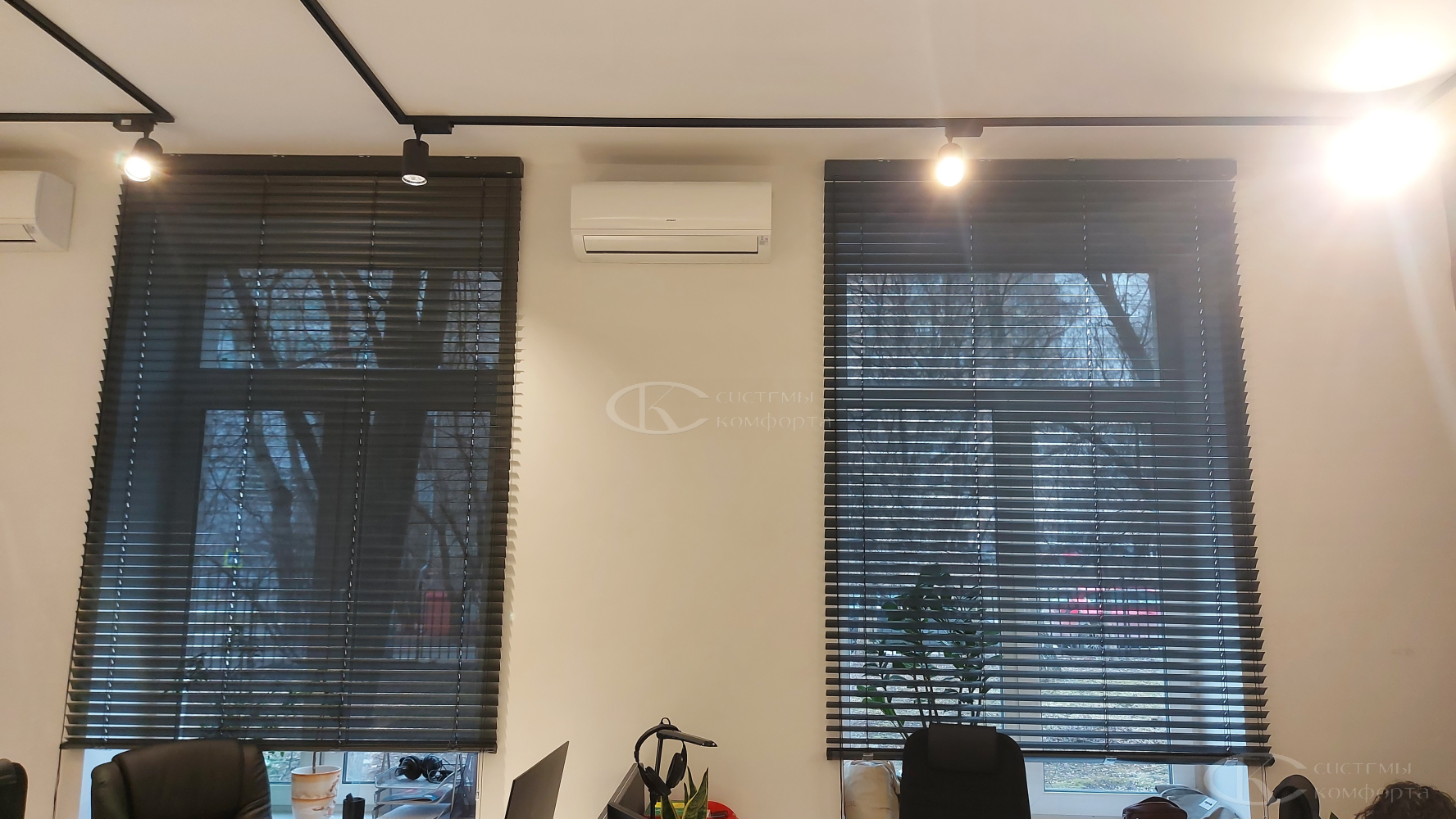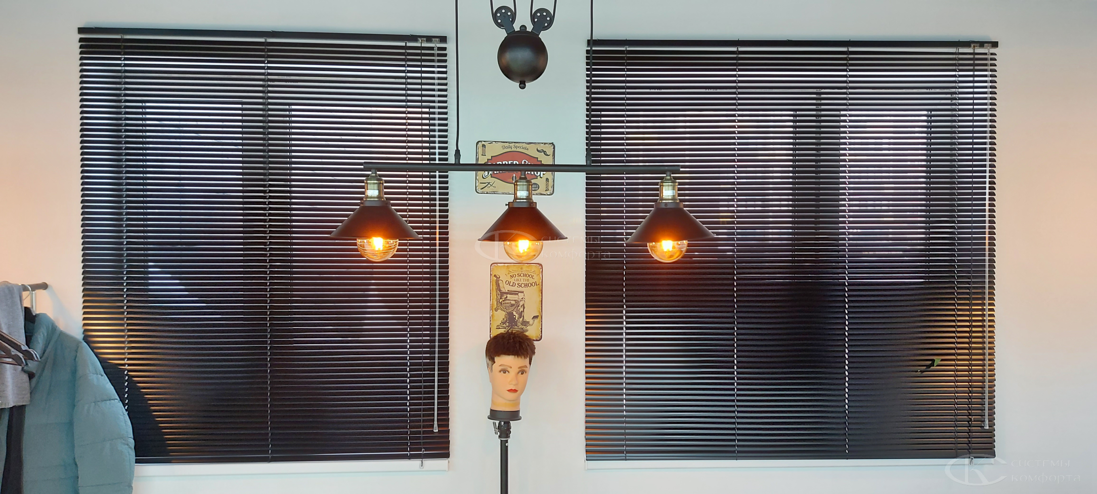 Компания «Системы комфорта» предлагает горизонтальные жалюзи с цветными алюминиевыми ламелями и перфорацией (опционально). Краска, которая используется в производстве, сертифицирована (экология), не выгорает на солнце и не истирается весь срок службы изделия.