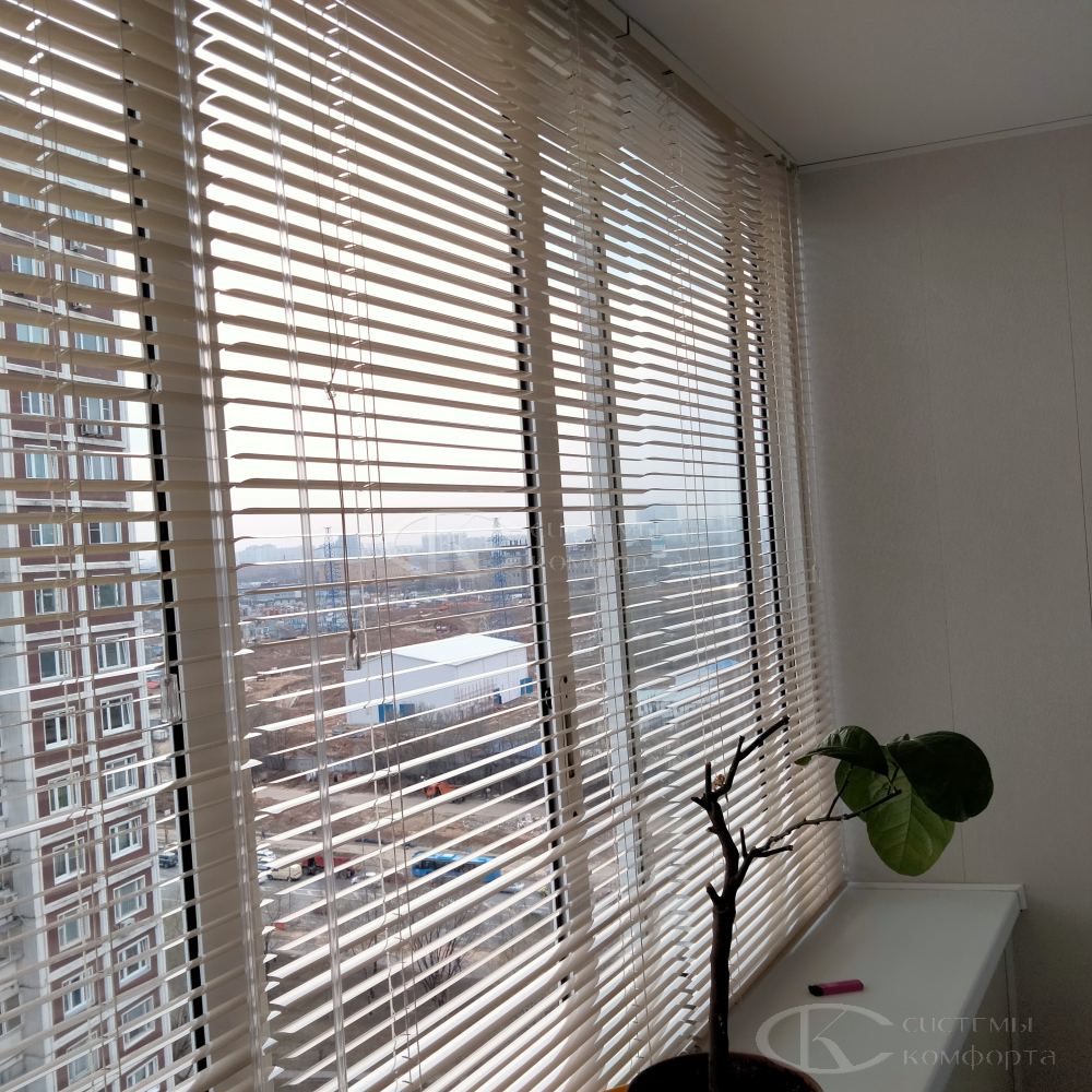 На маркетплейсах продают изделия с фиксированными размерами по ширине и высоте, с ограниченным выбором цветов и фактур, а также – не продаются практичные перфорированные ламели и с шириной ленты 50 мм, которые намного дешевле деревянных, но при этом очень солидно смотрятся в доме или в офисе.